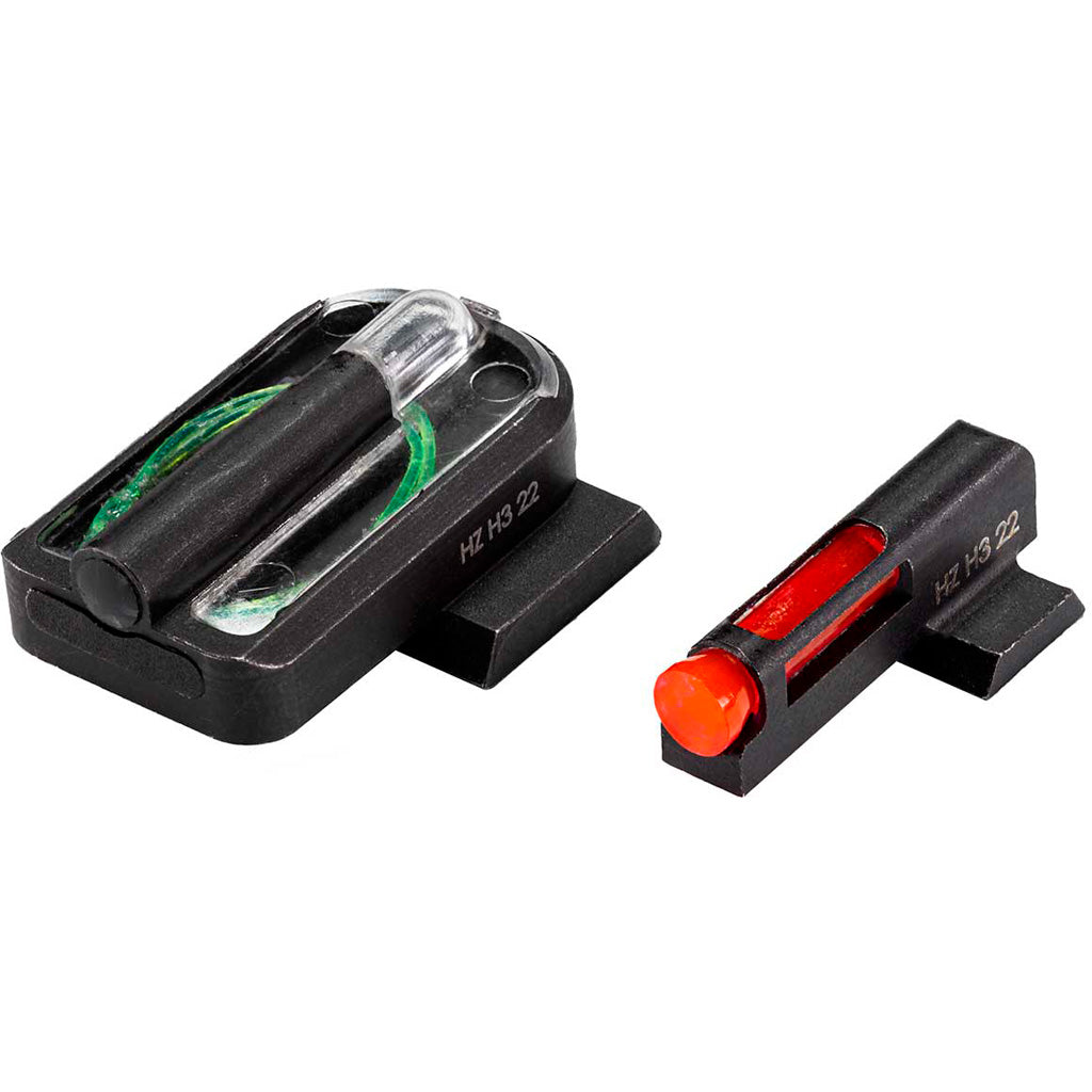 The HiViz FastDot H3 Handgun Sight is a low-profile, high-visibility sight system designed for Smith & Wesson M&P, Shield, and Shield Plus pistols in all calibers. Utilizing a combination of fiber-optic and tritium technology, it provides 24-hour illumination with a red front sight and green rear sight for rapid target acquisition. The ultra-bright encapsulated tritium ensures superior visibility in all lighting conditions, while the durable all-steel construction enhances longevity. Designed to fit standard holsters and mount like traditional sights, this patented sight system is an excellent upgrade for improved accuracy and performance.